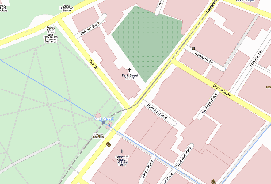 Mit diesem digitalen Park Street Church-Stadtplan finden Sie die Wege und Gassen in Boston und besuchen Sie wie zahlreiche weitere Boston Reisende die Kartenausschnitte nahe.